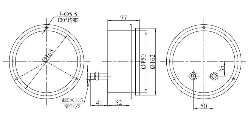 3. Gemeinsame Gewindegröße: konventionell M20 × 1.5 , Npt1/2 (oder Kundenbezeichnung);