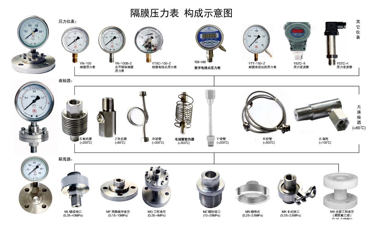◆ Anwendung: Aufgrund der indirekten Messstruktur eignet sich die Membrandruckmesser für die Messung des Drucks von Flüssigkeiten, Gasen oder körnigen fließenden Feststoffen mit hoher Viskosität, leicht zu kristallisierender, starker Korrosion und hoher Temperatur. Das Isolationsmembran verfügt über eine Vielzahl von Materialien, die sich an eine Vielzahl verschiedener ätzender Medien anpassen können.