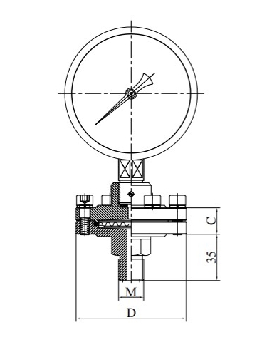 Dieses Instrument ist eine indirekte Messung. Isolation Zwerchfelldeformation unter dem Druck des gemessenen Mediums, die Versiegelungsflüssigkeit wird unter Druck gesetzt, und der Druck wird auf den Druck übertragen.